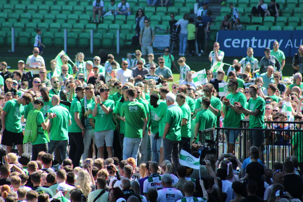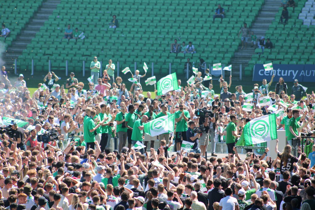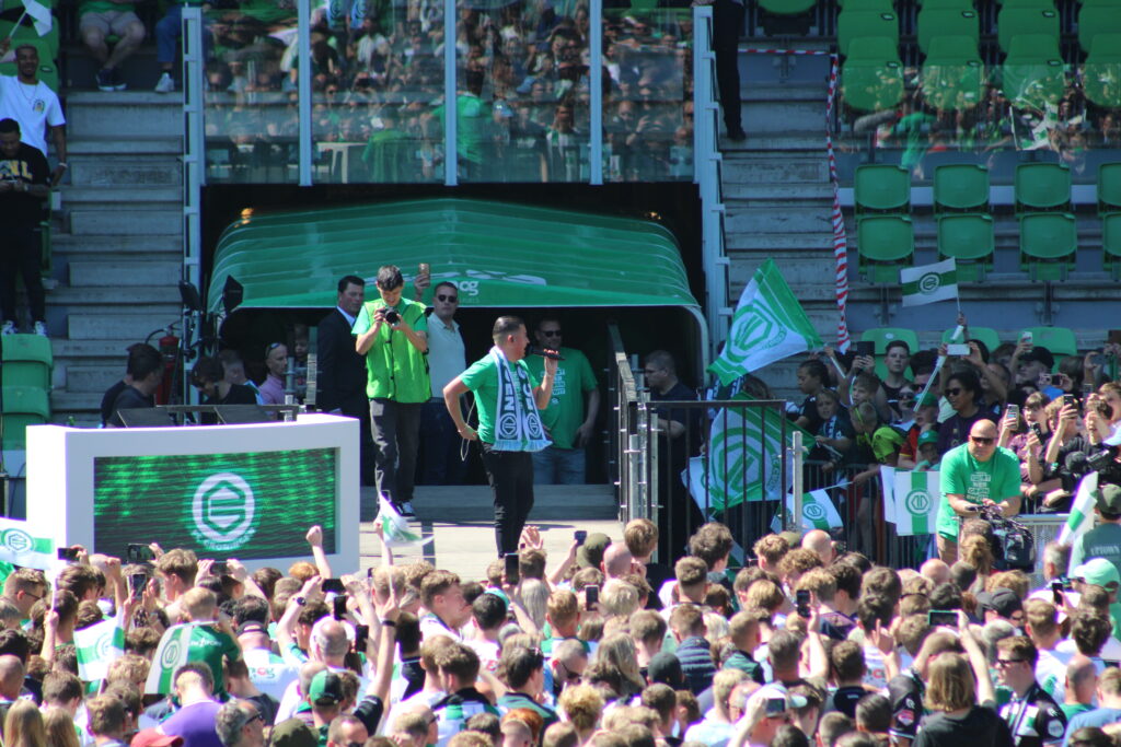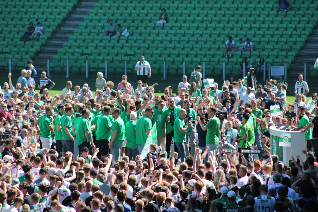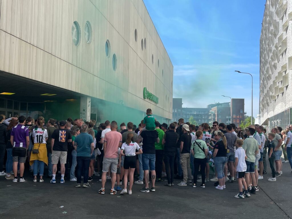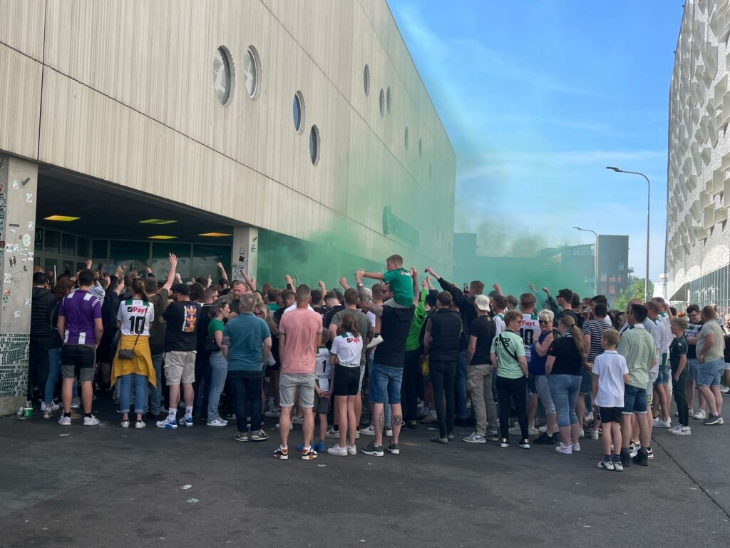 In de Euroborg vond zondagmiddag het promotiefeest van FC Groningen plaats. De huldiging trok duizenden mensen naar het stadion.