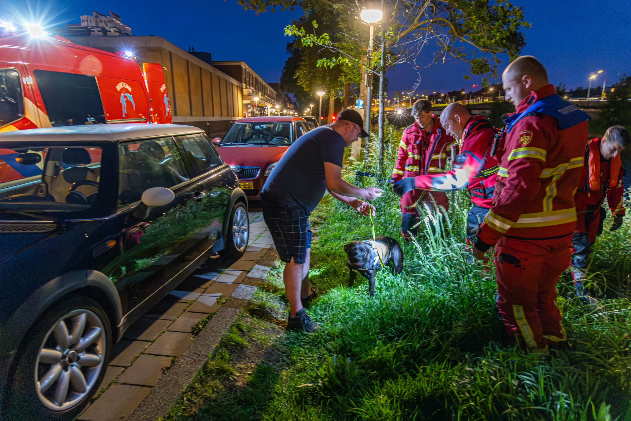 Brandweerlieden hebben dinsdagavond een hond gered uit het Hoornsediep. Dat meldt nieuwsfotograaf Rick ten Cate van tencatefotografie.nl.