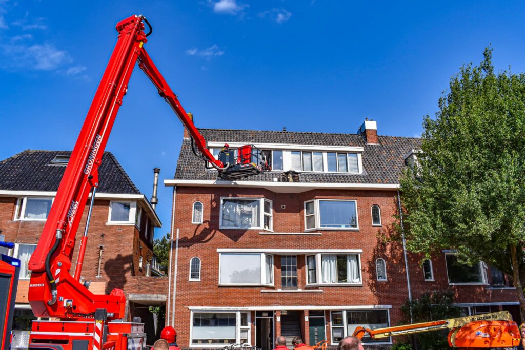De Groninger brandweer heeft zaterdag voor het eerst gebruik gemaakt van de nieuwe hoogwerker. Het voertuig werd een half jaar geleden gepresenteerd.