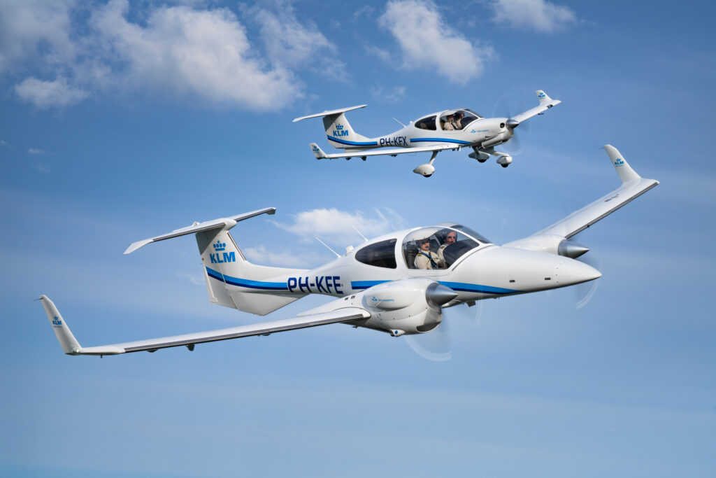 Op vliegveld Eelde vierde de KLM Flight Academy vrijdag officieel de komst van haar nieuwe toestellen. De achttien vliegtuigen kunnen allemaal vliegen op Sustainable Aviation Fuel, oftewel benzine of kerosine waar bijvoorbeeld frituurvet in is bijgemengd.
