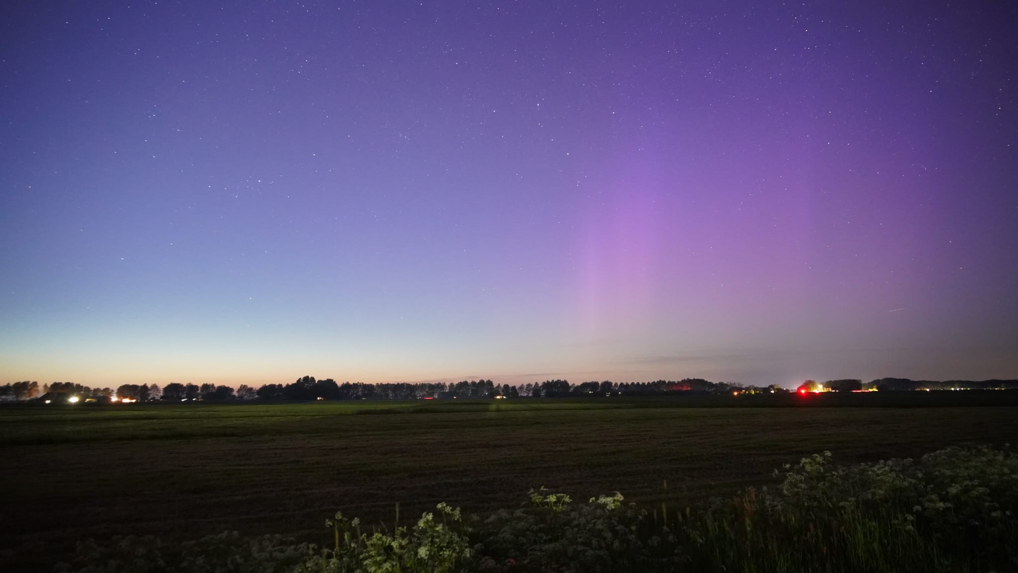 “Ik ben naar Dorkwerd gereden”, vertelt nieuwsfotograaf Patrick Wind van 112groningen.nl. “Met een lange sluitertijd lukte het om het noorderlicht aan het einde van de avond met mijn fotocamera vast te leggen.” Het gaat dan om zogeheten fotografisch noorderlicht. Dat wil zeggen dat de kleurenpracht niet met het blote oog is te zien. De afgelopen dagen heeft aan de voorkant van de zon een forse uitbarsting plaatsgevonden. Het gaat om één van de zwaarste zonnestormen in de afgelopen twintig jaar. Bij deze stormen zijn wolken met geladen deeltjes vrijgekomen die koers hebben gezet richting de aarde. Wanneer de deeltjes in onze atmosfeer terecht komen volgt een soort reactie waardoor de prachtige kleuren ontstaan.