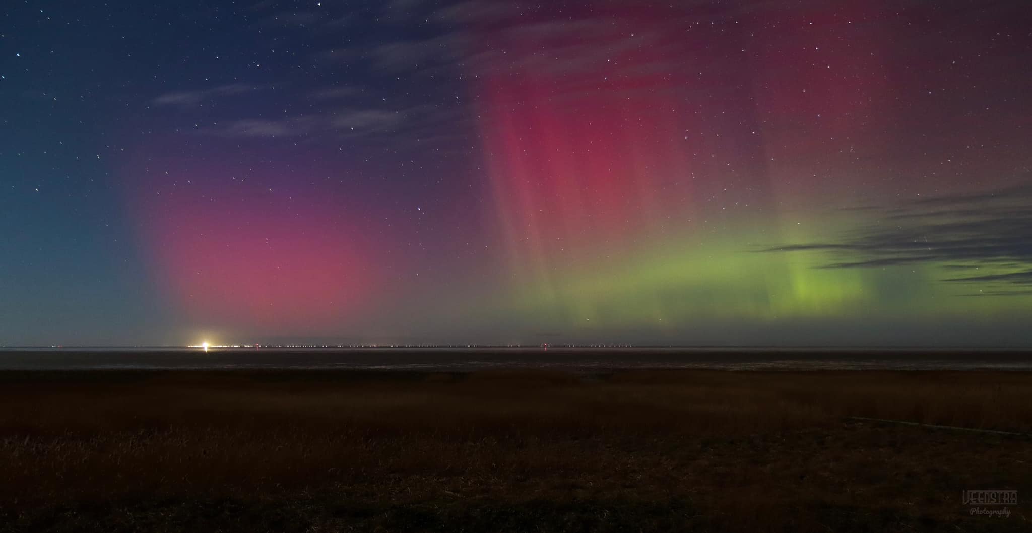Het noorderlicht gezien vanaf De Westhoek. Foto: Rodrigo Veenstra : facebook.com/rodrigo.veenstra