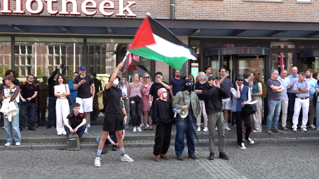 Pro-Palestina demonstranten hebben zich dinsdagmiddag flink laten horen tijdens de opening van het lustrumfeest van de Rijksuniversiteit. De actievoerders willen dat de universiteit alle banden met Israël verbreekt vanwege de oorlog die het land voert in Gaza.
