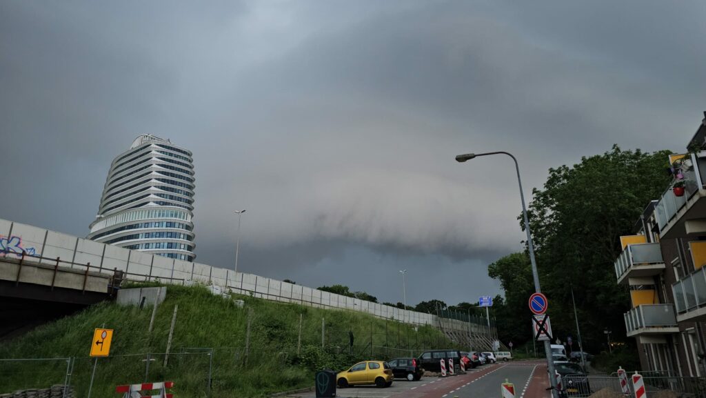 ⛈️ Wauw! De onweersbuien boven Groningen, zorgen nog zojuist voor deze prachtige #shelfcloud!