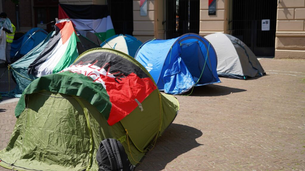 In navolging van andere studentensteden is maandagochtend ook op het Harmoniecomplex aan de Oude Kijk in ‘t Jatstraat een klein tentenkamp opgezet. De actievoerders mogen er voorlopig blijven, ook in avond en de nacht.