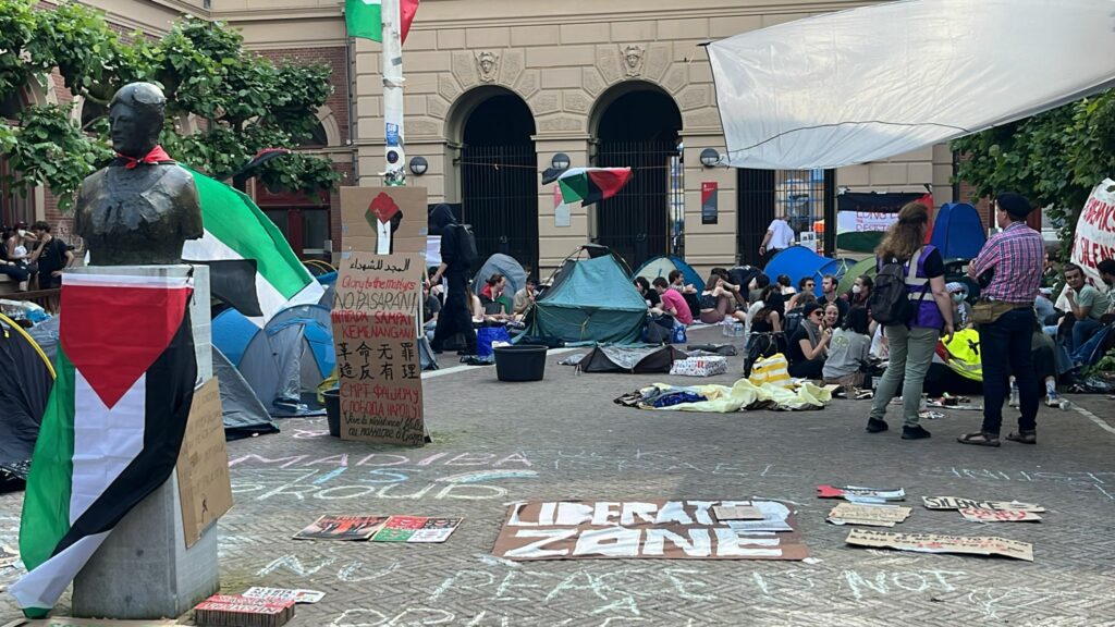 Volgens de initiatiefnemers achter de protestactie hebben ze ‘de campus van de universiteit heroverd’ en gaan ze niet weg totdat hun eisen zijn ingewilligd. De RUG moet, zo stellen de actievoerders, stoppen met alle academische samenwerkingen met Israëlische instellingen ‘waarvan bewezen is dat ze deelnemen aan de genocide, apartheid en uitbuiting van het Palestijnse volk.’