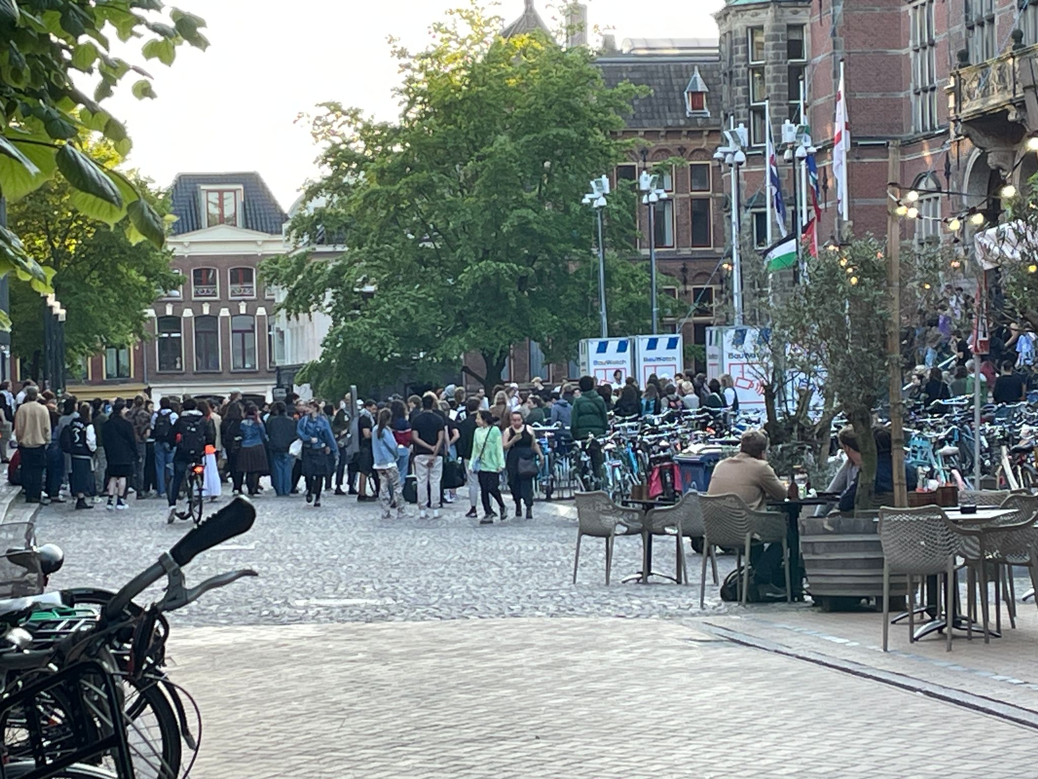 Het protest begon aan het begin van de avond. “De demonstranten noemen het een awareness-bijeenkomst”, vertelt RUG-woordvoerder Elies Wempe-Kouwenhoven. “Men vraagt aandacht voor de situatie in Gaza. Wij zijn eerder op de avond geïnformeerd over dit protest. Het beeld is dat het rustig is. De demonstranten hebben voor de begeleiding van dit protest eigen veiligheidsmensen ingezet. Bij ons is aangegeven dat het tot ongeveer 21.00 uur gaat duren.”