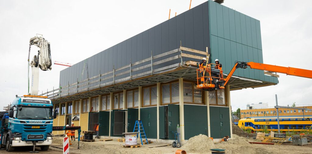De zwarte kleur hoort bij de isolatiepanelen die de afgelopen periode op het gebouw zijn aangebracht. Daar komt nog een speciale gevelbekleding overheen, die het verblijf helemaal waterdicht moet maken. Dat kan iets langer duren dan gepland, stelt Groningen Spoorzone. Het weer zit het aanbrengen van de rubberachtige coating wat in de weg. Aannemer Strukton hoopt dat het aanbrengen van de isolatiecoating in de aanloop naar de zomer klaar is.