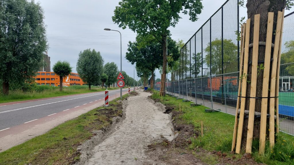 Het pad komt tussen de hockey en voetbalvelden en de weg. Ook worden drie oversteekplaatsen voor voetgangers aangebracht. Die worden verhoogd aangelegd, zodat automobilisten minder hard over de weg kunnen rijden.
