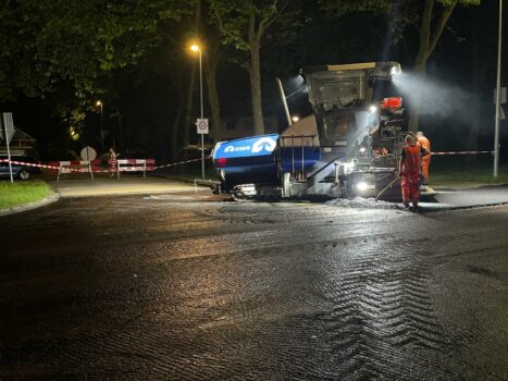 In Beijum wordt zaterdag druk gewerkt om de Amkemaheerd van een nieuwe asfaltlaag te voorzien. De werkzaamheden duren tot zondagochtend.