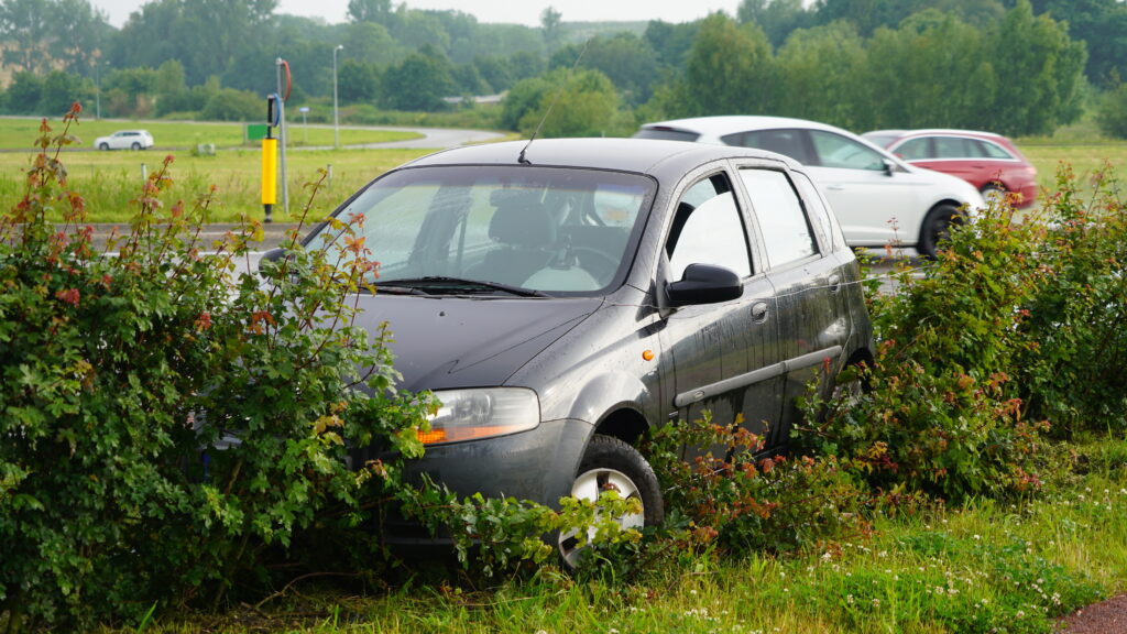 Op één van de rotondes bij knooppunt Westerbroek is vrijdagavond een auto in de bosjes terecht gekomen.