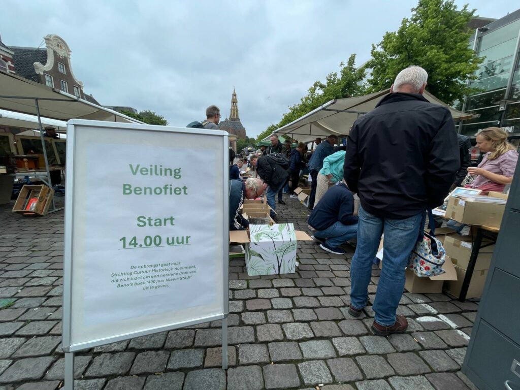 Op de Vismarkt werd een groot deel van de boekencollectie van wijlen stadshistoricus Beno Hofman te koop aangeboden. Het ging om zowel antieke als recente boeken. Vrijwel al het materiaal had een link met een Gronings thema: het landschap, een bepaalde periode uit de geschiedenis, een stadswijk of een bedrijf of persoon. Naast boeken werden er ook oude kranten, landkaarten en foto’s te koop aangeboden. Bernhard: “Wat het voor ons heel bijzonder maakt zijn de verhalen die vandaag met ons gedeeld zijn. Verhalen over Beno, wat hij heeft betekend of mooie geschiedkundige feitjes.”