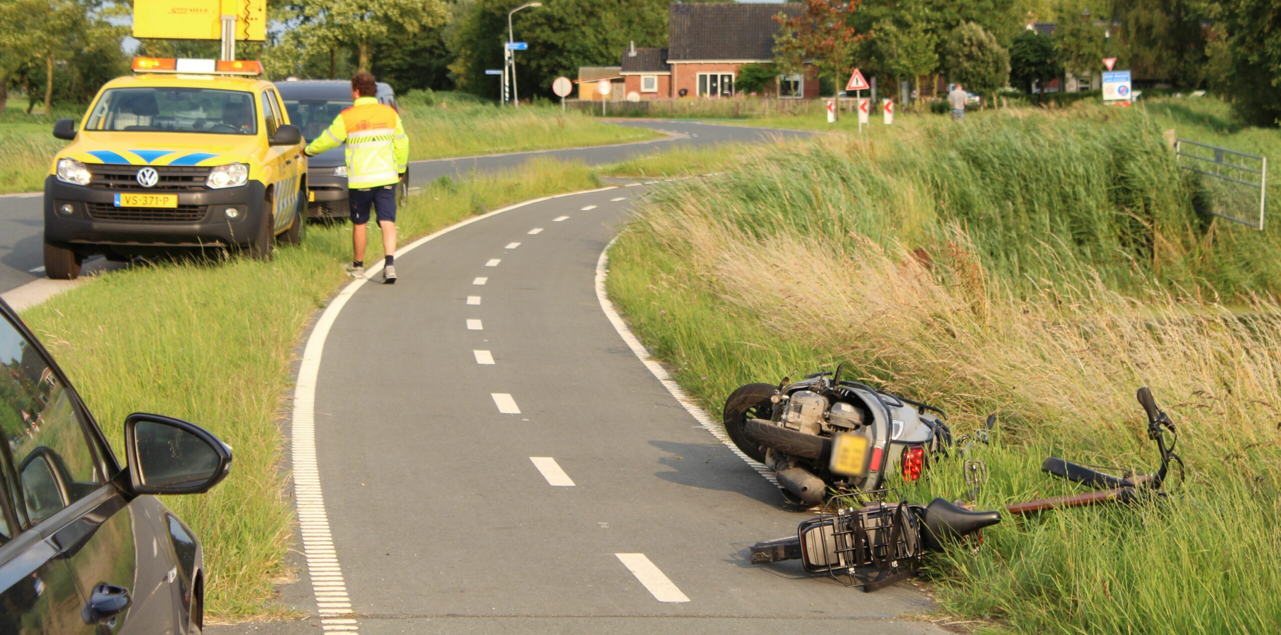 Op het fietspad naast de N993 bij Sint Annen zijn vrijdagavond een fietser en een scooterbestuurder ten val gekomen na een botsing.