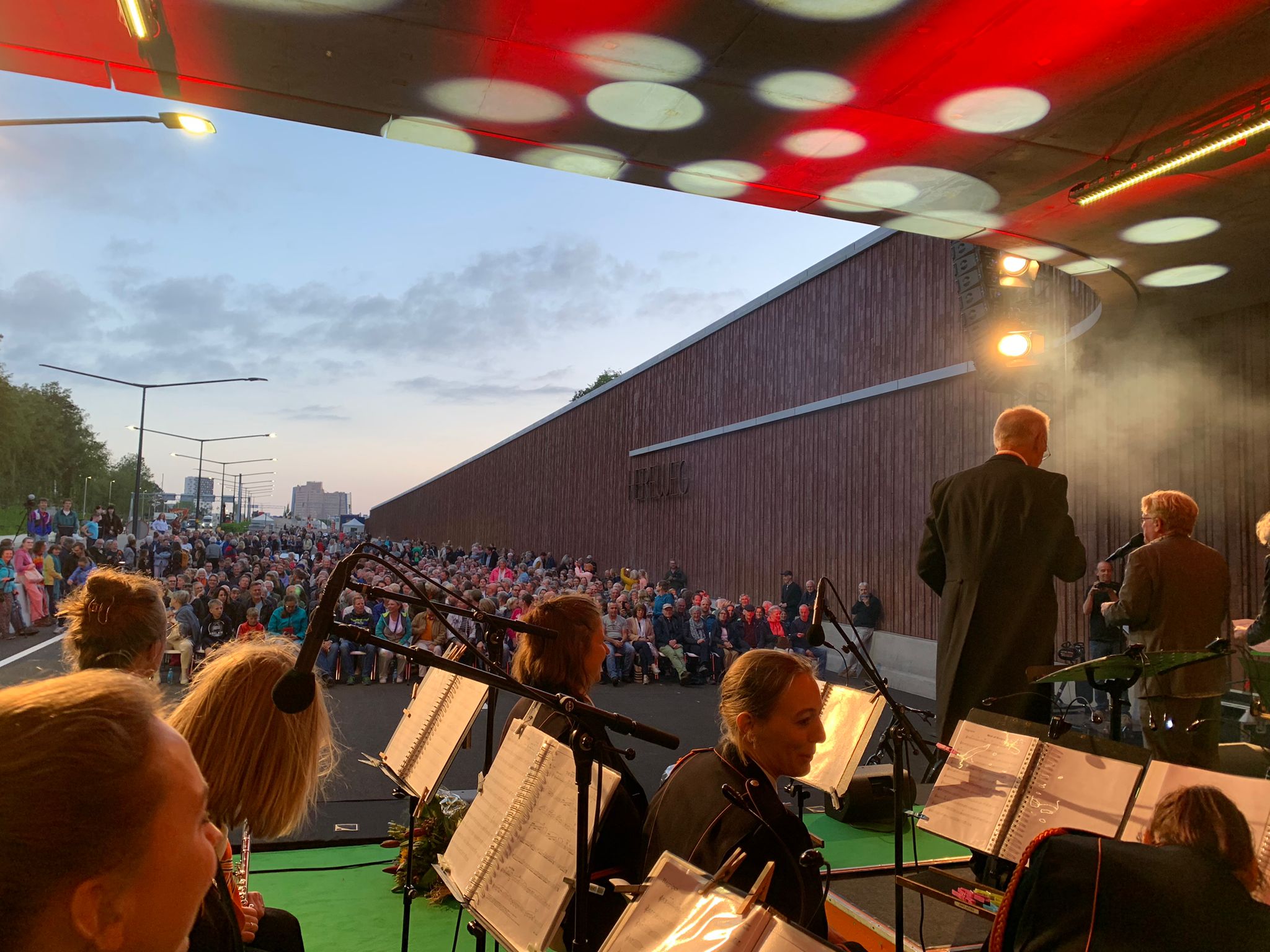 “Het ging om een concert dat aangeboden werd door Aanpak Ring Zuid als dankjewel naar de omwonenden. De afgelopen jaren is er hard gewerkt aan de nieuwe ringweg en dit is met overlast gepaard gegaan. Men wilde graag iets doen in de richting van de omwonenden en dat werd dit concert. Aanpak Ring Zuid heeft er voor gezorgd dat het ook echt een mooi concert kon worden. De aankleding was bijvoorbeeld heel mooi, maar ook licht en geluid waren goed geregeld. Als orkest werden wij met busjes naar de locatie gebracht. Omwonenden konden via de Papiermolen afdalen naar de tunnelbak waar koffie, thee en wat lekkers klaar stond. Dit was gewoon heel goed georganiseerd.”