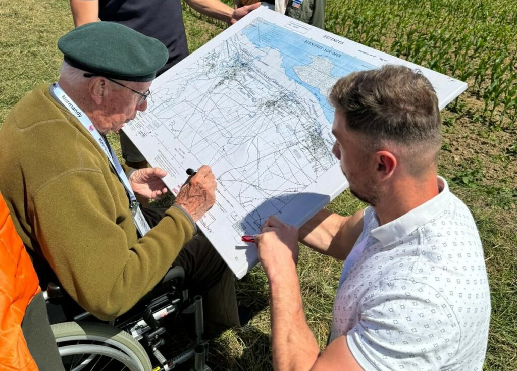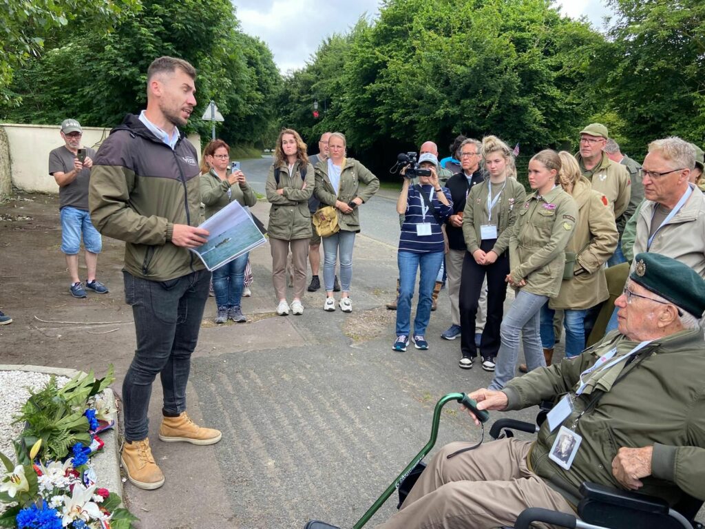 Eén van de redenen waarom Stoppels in Normandië was, is omdat hij een tour verzorgde voor de Canadese veteraan Jim Parks. “Ik ben actief met de Liberation Route Europe. Deze foundation verbindt mensen en organisaties met elkaar, die als het ware de verhalen over de Tweede Wereldoorlog levend wil houden. Hierdoor waren er al behoorlijk wat contacten. Jim Parks heb ik vorig jaar ontmoet in Appingedam. Hij heeft deze stad in 1945 helpen bevrijden en heeft in 2023 bloemen gelegd bij de plaquette van zijn voormalige eenheid The Royal Winnipeg Rifles, die te vinden is in de buitenmuur van de Nicolaikerk.”