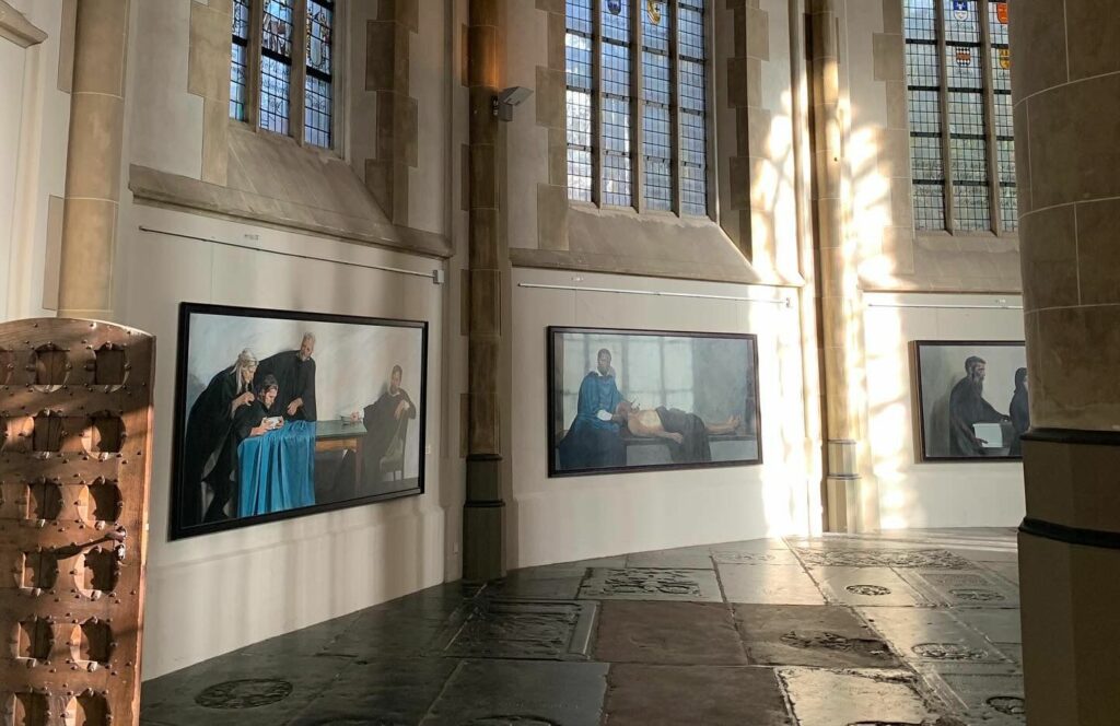 “Klopt. Ik kende iemand die in de Martinikerk actief was. Diegene wist dat ik schilderijen maak. Er werd gevraagd of ik ook een schilderij kon maken van Sint Martinus, de naamgever van de kerk. Dat project is een beetje uit de hand gelopen. Het heeft geresulteerd in een vrij groot werk dat al enige tijd in de kerk te bezichtigen is. De reacties waren zo positief dat toen het idee ontstaan is om de zeven christelijke werken van barmhartigheden uit te beelden en om deze op te hangen in de kooromgang. Dat project begon in 2017. En nu zit het er dus op.”
