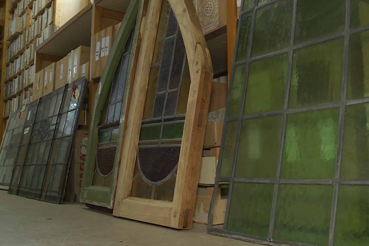 De karakteristieke bouwelementen uit een bepaalde periode kunnen net het ontbrekende puzzelstukje zijn die een restauratie van een pand perfect maken. Soroka wijst op een kozijn met glas in lood: “Deze gaat naar een pastorie in Termunterzijl”.