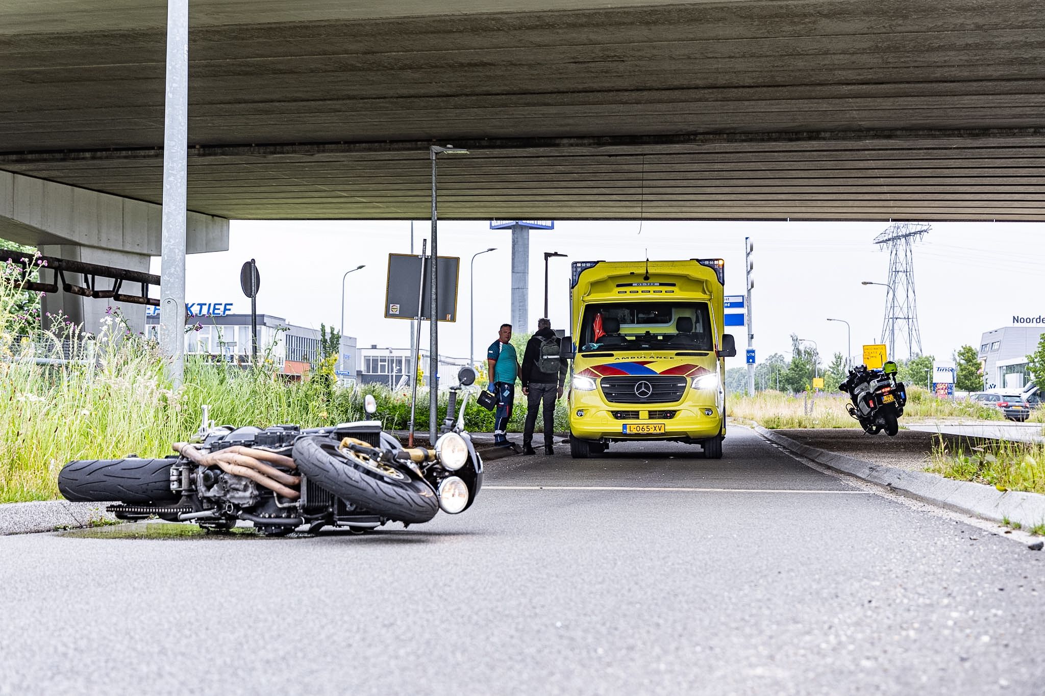 Bij een verkeersongeluk in de Bornholmstraat is zaterdagmiddag een motorrijder gewond geraakt. Dat meldt nieuwsfotograaf Rick ten Cate van tencatefotografie.nl.