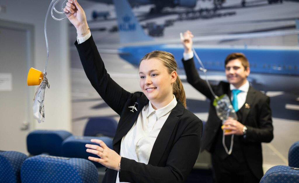 Stewards, stewardessen en pursers in spé van de Noorderpoort-opleiding ‘Luchtvaartdienstverlener’ krijgen vanaf volgend jaar grotendeels les op Groningen Airport Eelde.