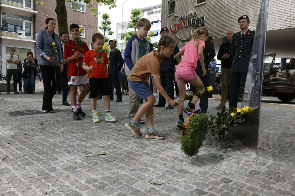 Het oorlogsmonument Vector of Memory ter herinnering aan de bevrijding van Groningen door de Canadezen is donderdagmiddag onthuld op de Grote Markt.