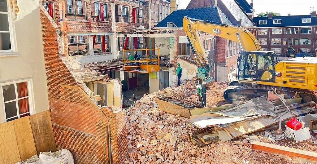 Aan de Sint Jansstraat is tijdelijk een indrukwekkend uitzicht op het Forum ontstaan door de voortschrijdende sloop voor de nieuw- en verbouw van kunstencentrum VRIJDAG.