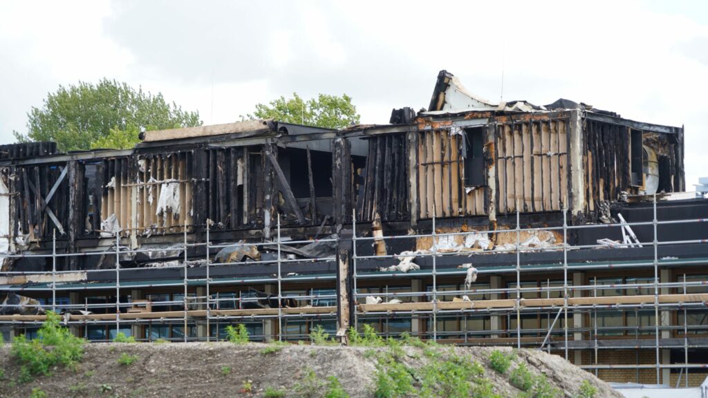 De brand brak vorige week woensdagochtend uit in het in aanbouw zijnde gebouw. Vanwege de rookontwikkeling moest het treinverkeer worden stilgelegd. Rond 13.00 uur was het vuur onder controle. Na de brand heeft de aannemer schade-expert Artium ingeschakeld om de schade inzichtelijk te maken. Uit de eerste inspecties blijkt dat de bouwkundige schade aan de constructie van het gebouw aanzienlijk is. Het dak, de wanden op de tweede verdieping en de toiletgroepen op de begane grond zijn flink beschadigd.
