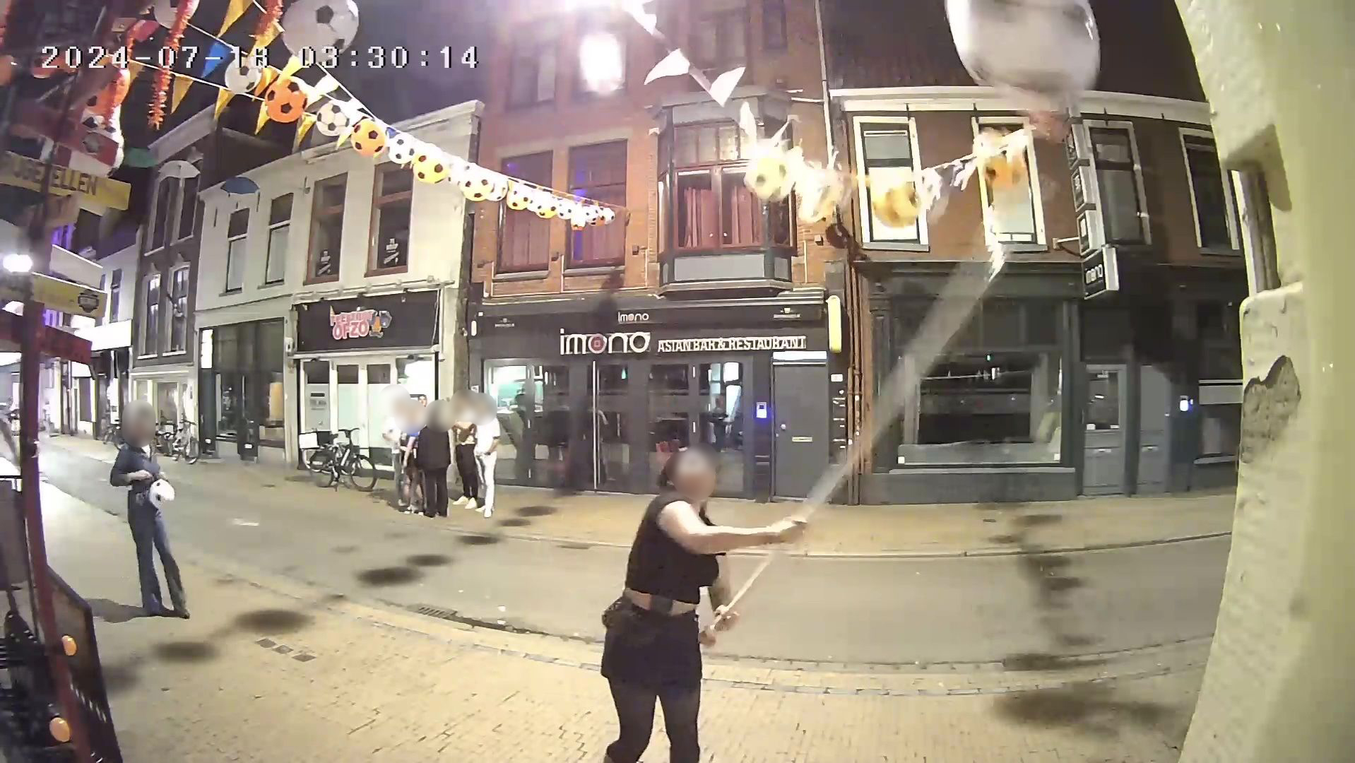 Het feestcafé deelde donderdagavond camerabeelden van het incident. Daarop is te zien hoe twee jonge vrouwen (de namen lijken bekend bij het café) de gevel van het feestcafé rond 03.25 uur in de nacht beklimmen om vlaggenstokken te stelen.