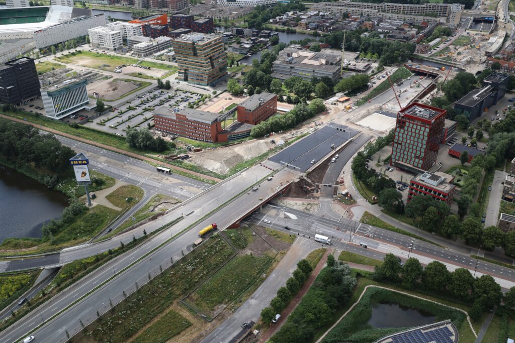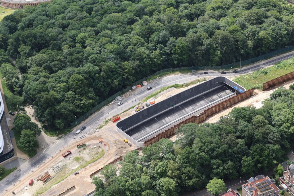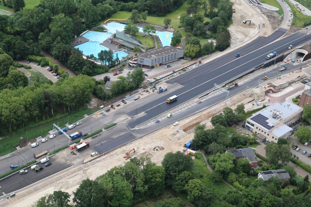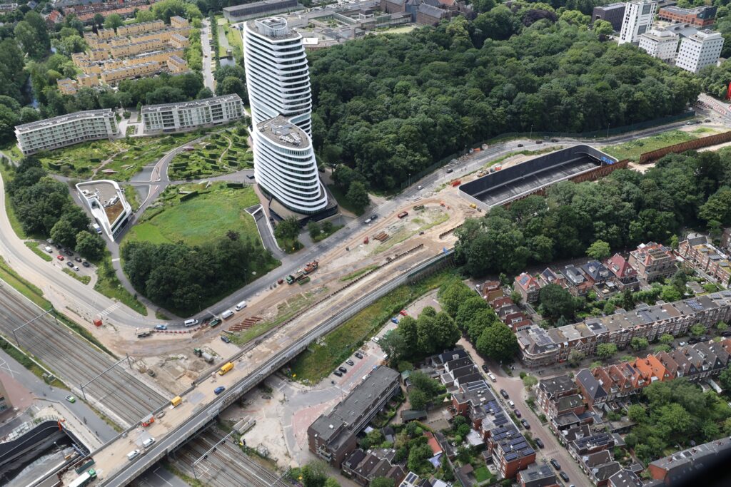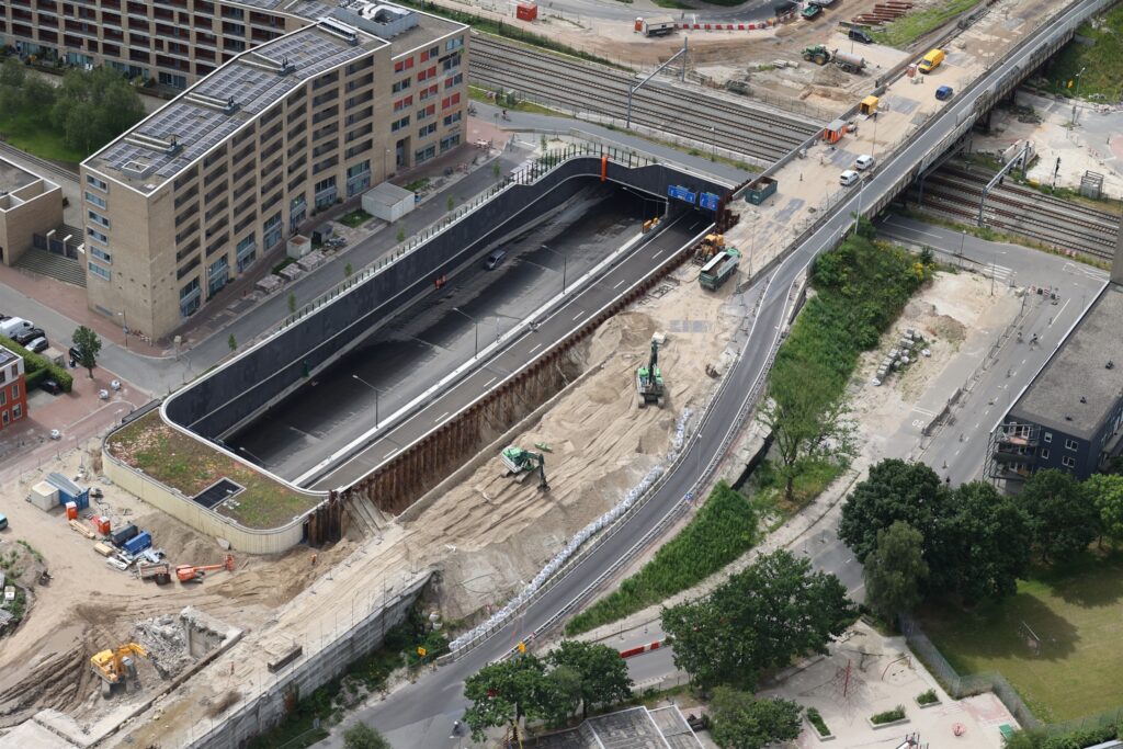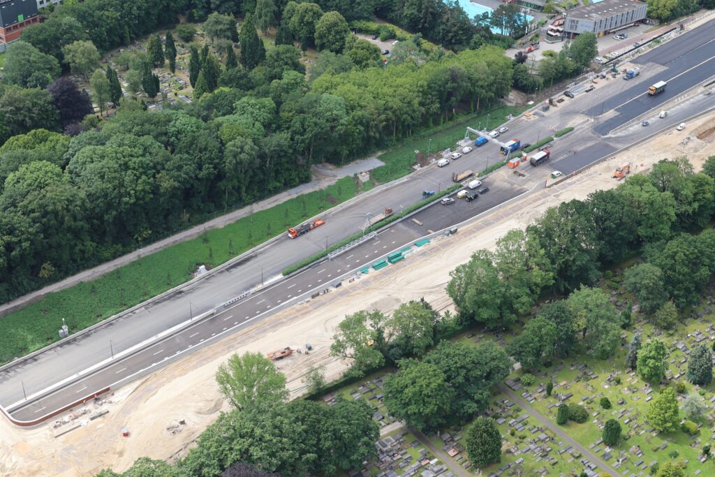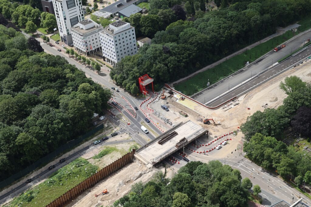 Rijkswaterstaat vloog eind juni van oost naar west over de nieuwe verdiepte ligging van de zuidelijke ringweg, vanaf het Europaplein naar het Julianaplein. Naast de verdwijnende oude Ring-Zuid is, zo stelt Aanpak Ring-Zuid, ook goed te zien dat de verdiepte ligging al heel ver is.