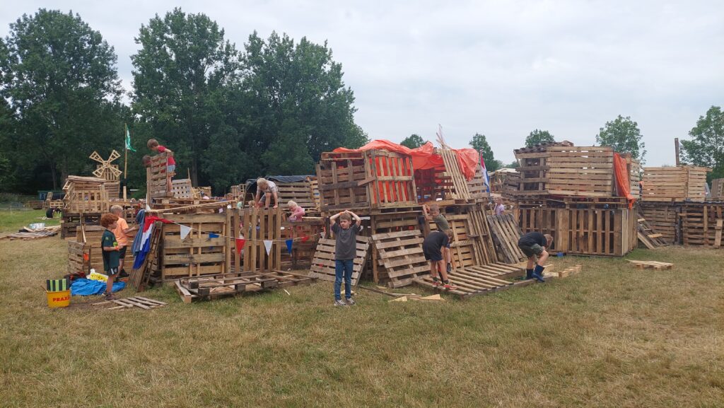 “De hele week is er hard gewerkt. En het is iedere keer weer indrukwekkend om te zien hoe snel er mooie dingen gebouwd worden. Op vrijdag is er volop ruimte om te kunnen spelen. Na de beoordeling door de jury vieren we een feestje op het activiteitenveld. De brandweer van Haren kwam bijvoorbeeld langs. Zij rolden de slangen uit zodat er een groot waterfeest ontstond en kinderen op de stormbaan konden glijden. En we hadden heerlijke broodjes knakworst voor iedereen geregeld.”