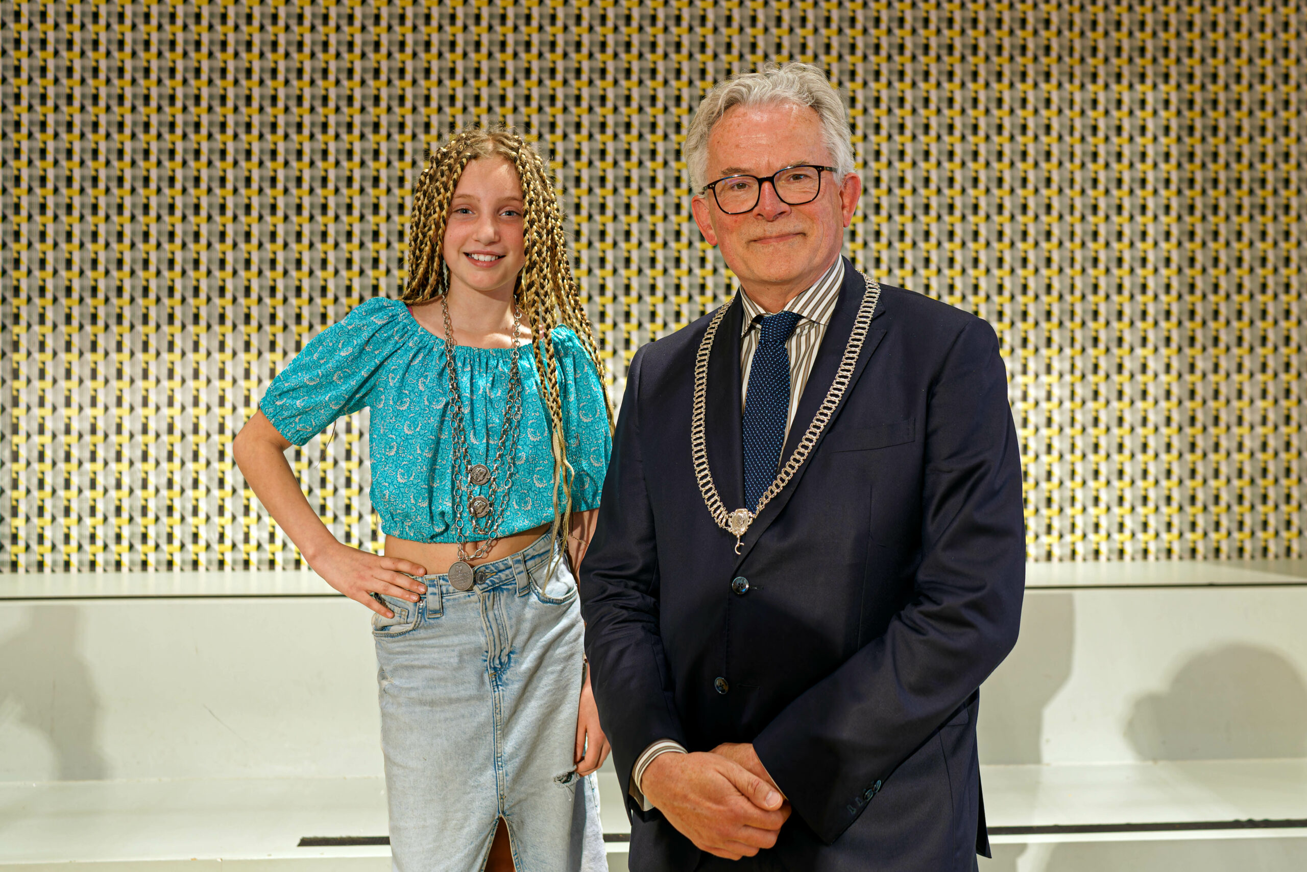Burgemeester Koen Schuiling maakte donderdagmiddag in Forum Groningen bekend dat Inez de nieuwe kinderburgemeester wordt voor het komende jaar. Doris wordt de nieuwe locokinderburgemeester.
