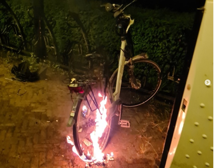 De verdachte stond naast de brandende fiets en ging er vandoor toen agenten arriveerden. Na een korte achtervolging werd de man ingerekend.