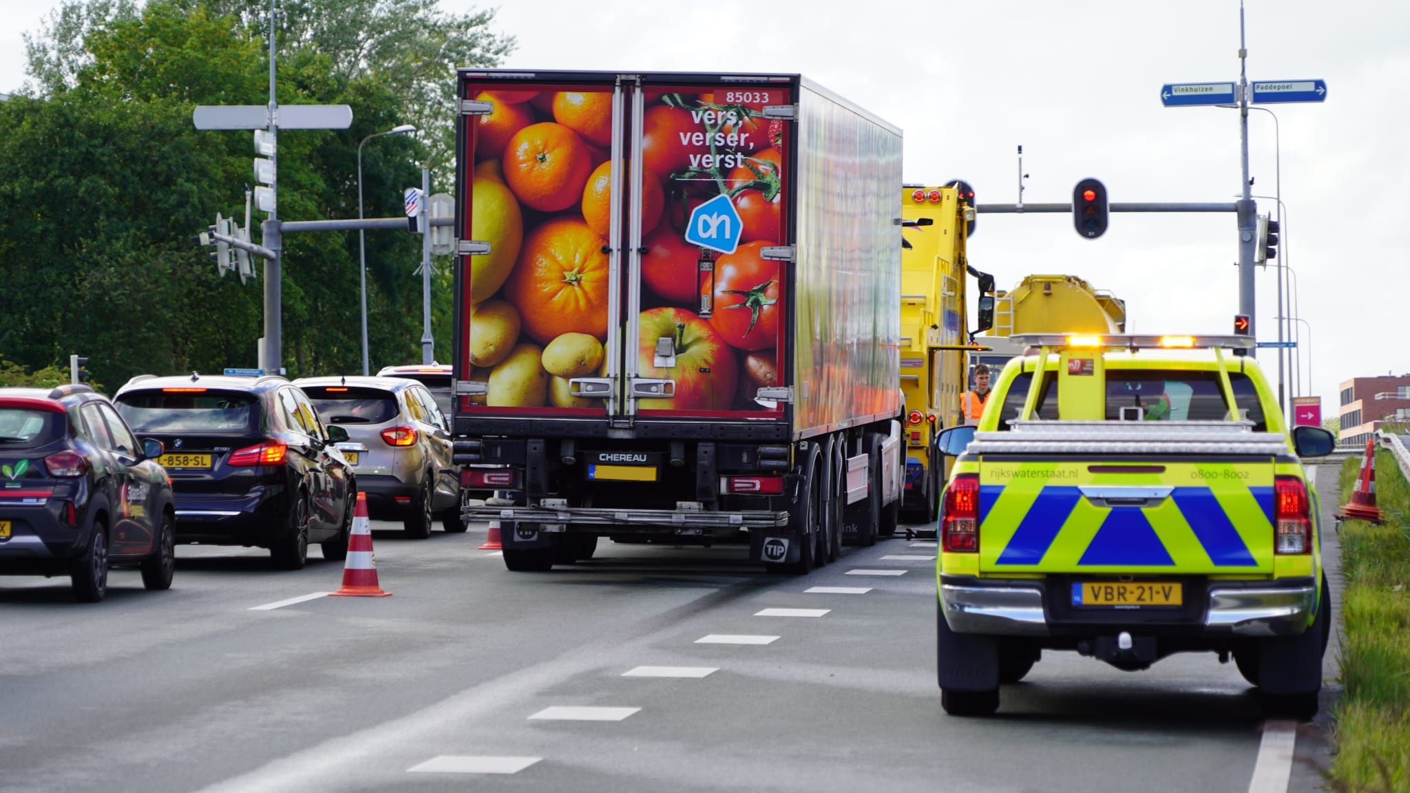 Een vrachtwagen met pech heeft zaterdag aan het einde van de middag voor vertraging gezorgd op de westelijke ringweg. Dat meldt nieuwsfotograaf Patrick Wind van 112groningen.nl.