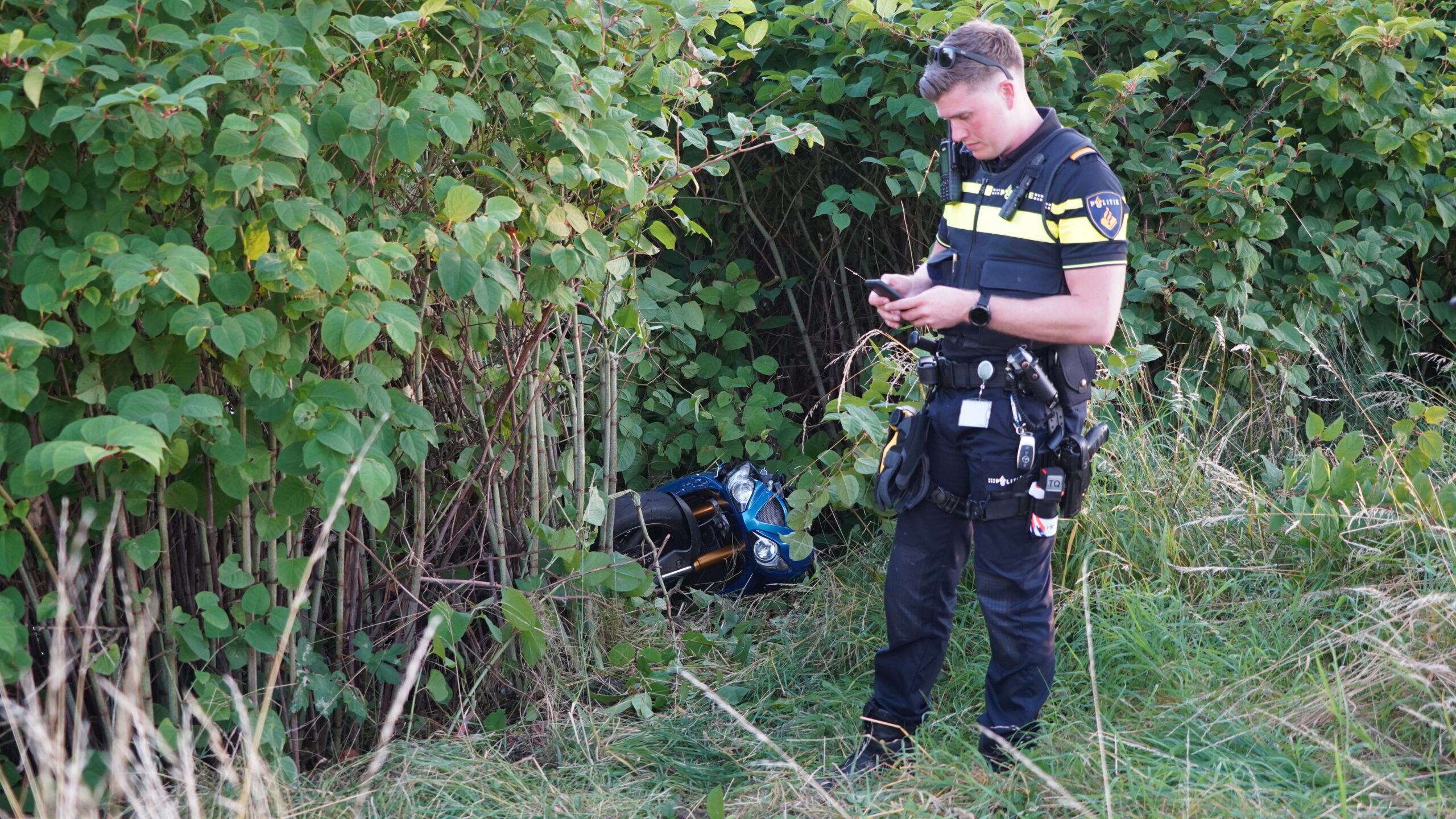 De bestuurder raakte gewond, nadat hij met zijn tweewieler in de bosjes belandde.