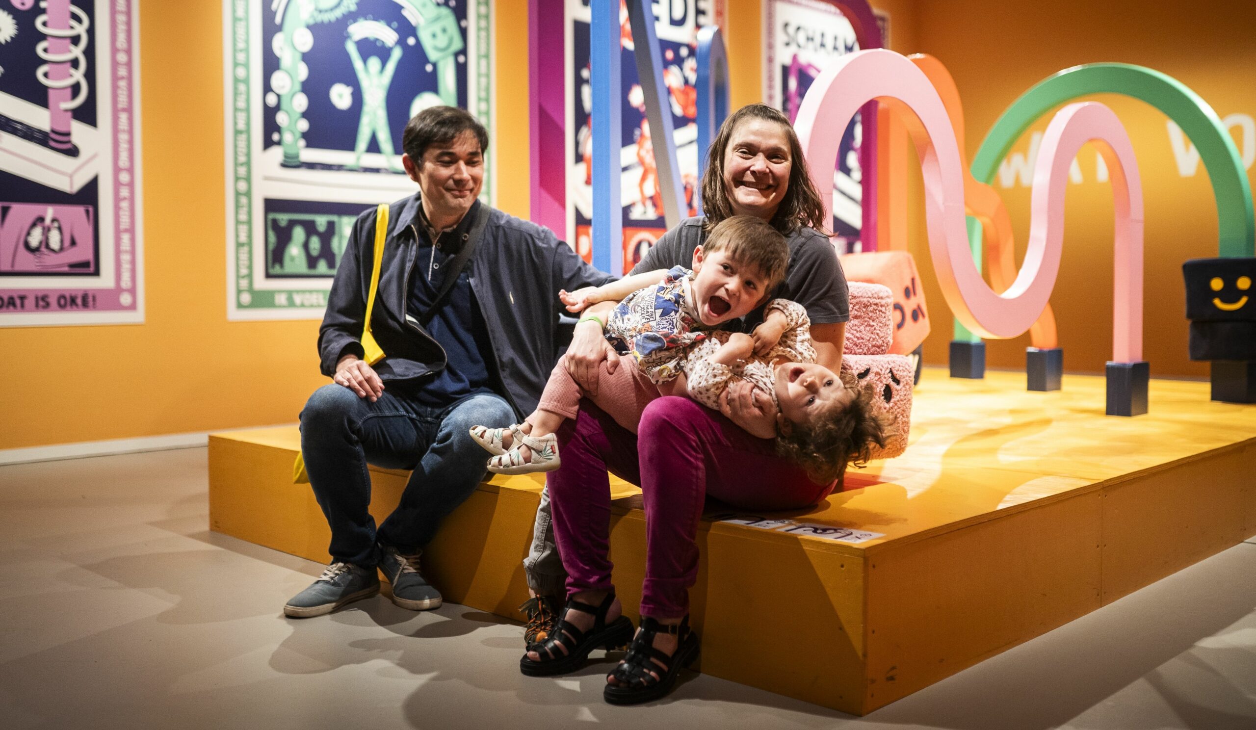 De familie Bésanger-Try kwam naar het Groninger Museum tijdens hun vakantie. Ouders Aurélien en Anne-Laure vonden het museum via internet en waren direct enthousiast. Met de kinderen wilden ze graag naar de Kinderbiënnale, waar Tristan en zijn zusje Mélusine (18 maanden) de hele dinsdag plezier hadden.