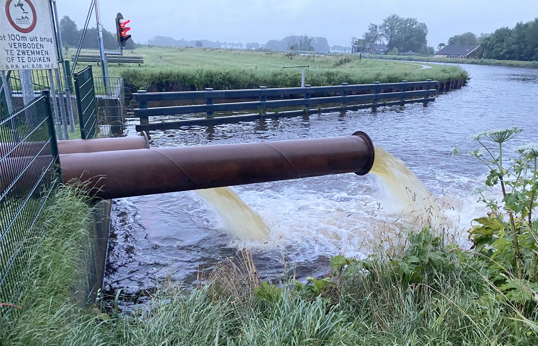 De reeds aanwezige buizen van de noodbemaling moeten opnieuw op elkaar worden aangesloten. De noodbemaling werd in juni geplaatst om de aanhoudende regen te verpompen van het Damsterdiep naar het Eemskanaal. Dit was nodig, omdat het gemaal De Drie Delfzijlen wordt gerenoveerd en geëlektrificeerd. Daardoor kon dit gemaal slechts op halve kracht draaien en ook de komende twee weken is daar sprake van.