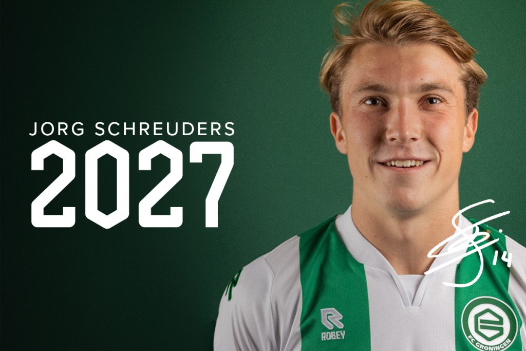 FC Groningen heeft met Jorg Schreuders een nieuw driejarig contract gesloten. De 19-jarige Stadjer verlengde zijn overeenkomst met de FC tot medio 2027.
