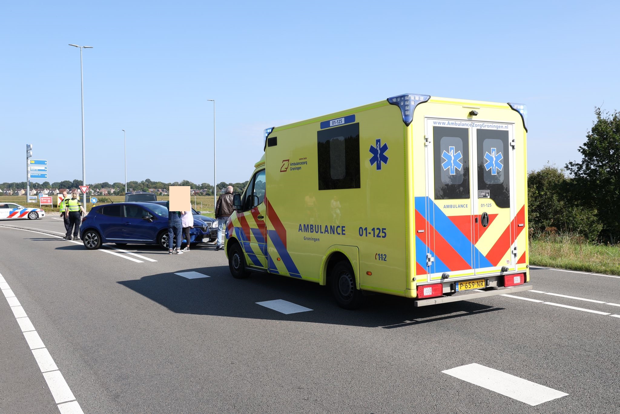 Het ongeluk gebeurde rond 15.00 uur ter hoogte van de rotonde met de Euvelgunnerweg. “Door nog onbekende oorzaak zijn de bestuurders van twee personenauto’s met elkaar in botsing gekomen”, vertelt Ten Cate. “Door de botsing liep één van de inzittenden verwondingen op. Hulpdiensten waren snel aanwezig. Ambulancemedewerkers hebben de persoon op locatie kunnen behandelen. Niemand hoefde mee naar het ziekenhuis.”