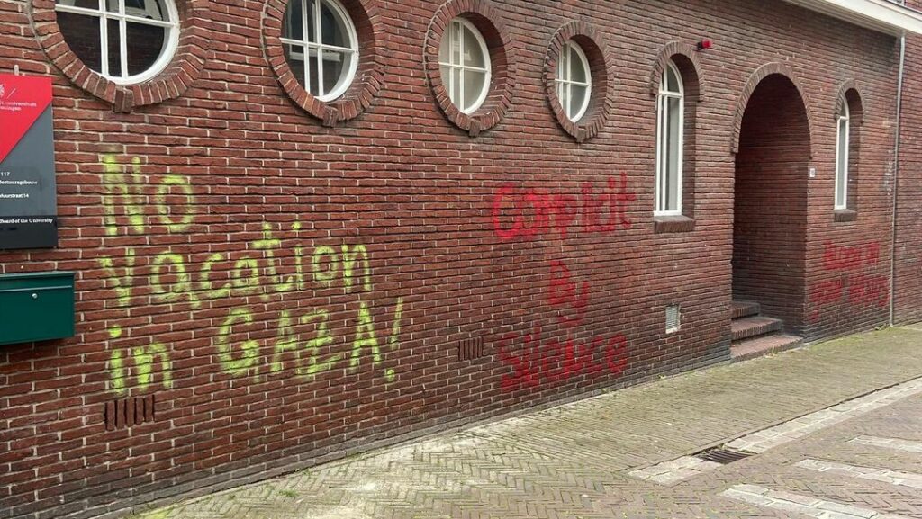 De bekladdingen vonden onder meer plaats op de panden van restaurants van FLO, FLFL en Lust en winkelketen Primark. Ook een gebouw van de RUG aan de Muurstraat moest het opnieuw ontgelden bij de kladders, vermoedelijk uit pro-Palestijnse hoek.
