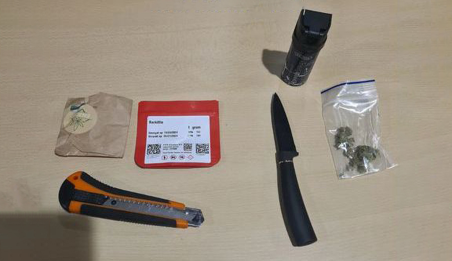 De drie jongens (twee van 21 en één van 26, allen uit Groningen) bleken inderdaad verboden waar bij zich te hebben, vertelt teamchef Gerard de Jonge van de politie in het centrum: een stanleymes, een keukenmes, pepperspray, hennep en harddrugs.