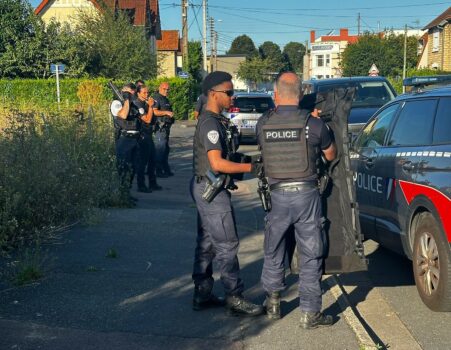 De zwaarbewapende Franse Gendarmerie verzamelt zich in de straat. Foto: eigen foto