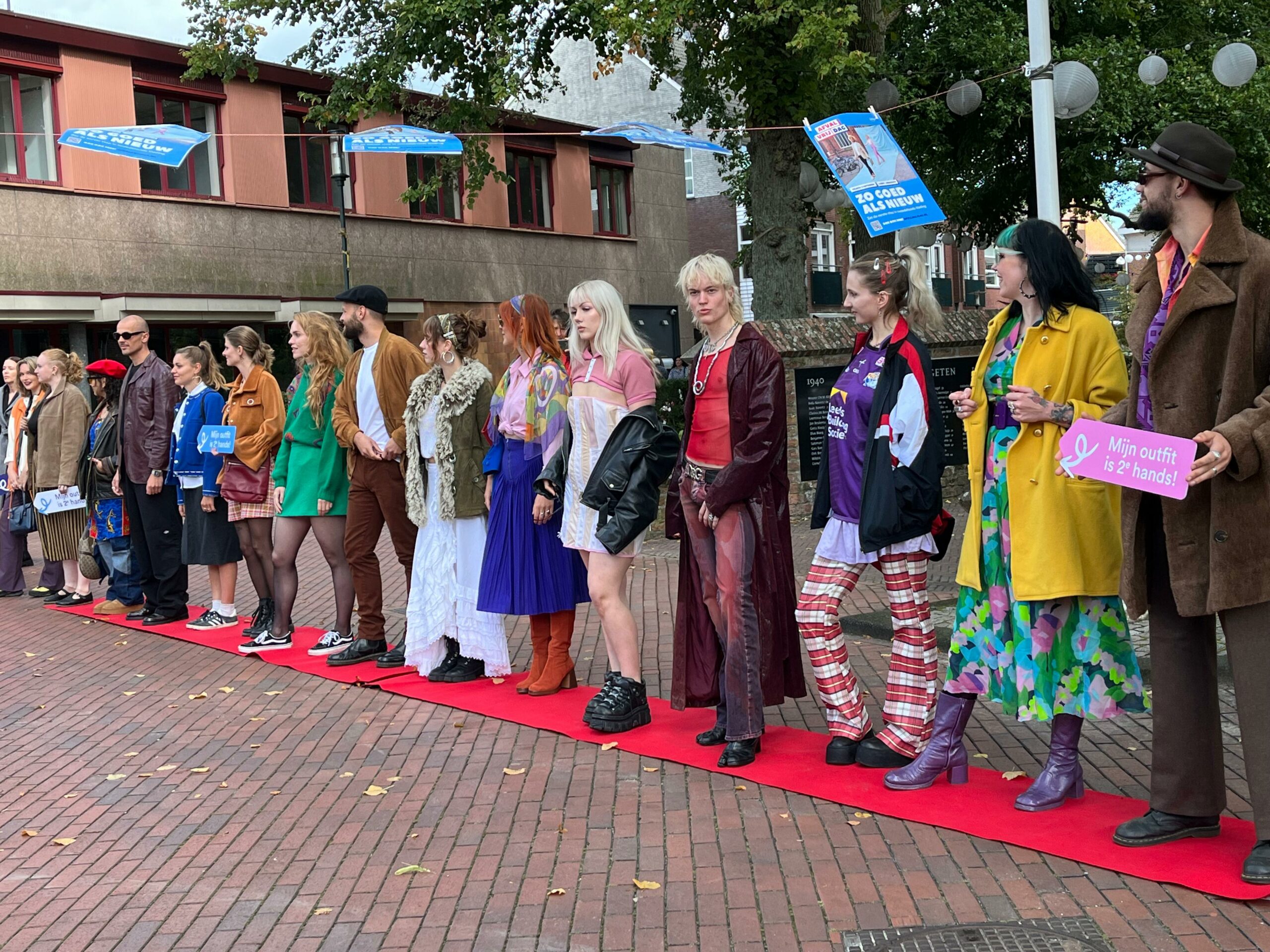 Vijftien winkels met tweedehands kleding deden mee aan de modeshow. Wethouder Wijnja gaf op het middaguur het startsein aan de modellen. Onder begeleiding van verkeersregelaars vertrokken de modellen vanaf het Raadhuisplein richting Stad. Een echte ‘catwalk’ was er niet: de modellen moesten het doen met het trottoir. Daardoor blijft het echte record uit het Guinness Book of World Records in België.