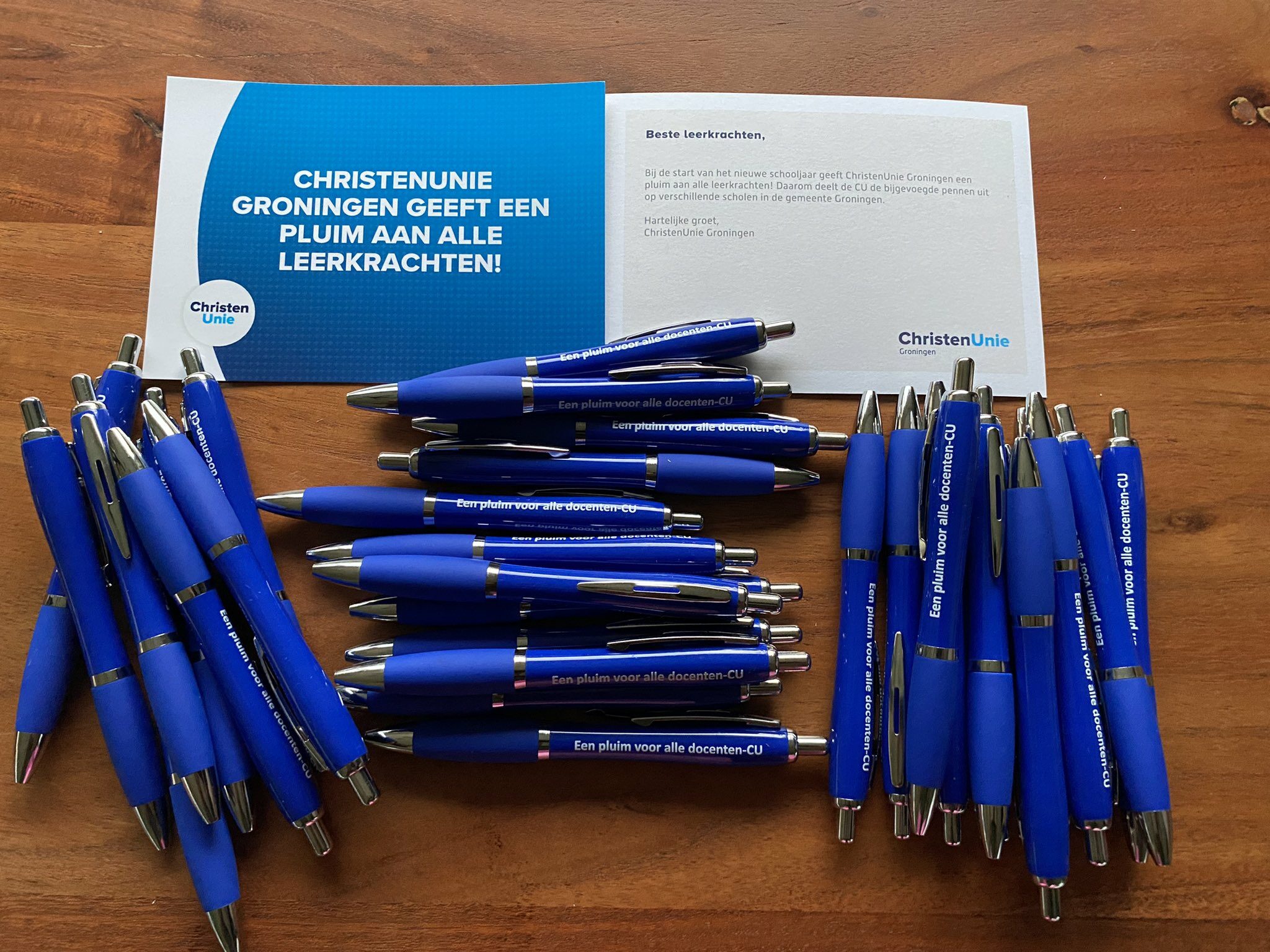 Met een kaartje en een pen heeft de fractie van de ChristenUnie in de gemeente leerkrachten en docenten afgelopen week een pluim gegeven. Volgens de partij is waardering op zijn plek.