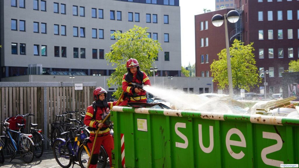 Een container met bouwafval is donderdagmiddag aan de Leonard Springerlaan in brand gevlogen.