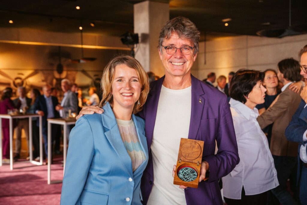 Wethouder Carine Bloemhoff reikte woensdagmiddag de Erepenning van de gemeente Groningen uit aan Wim van de Pol. Van de Pol ontving de penning bij zijn afscheid als bestuursvoorzitter van Noorderpoort op Groningen Airport Eelde.