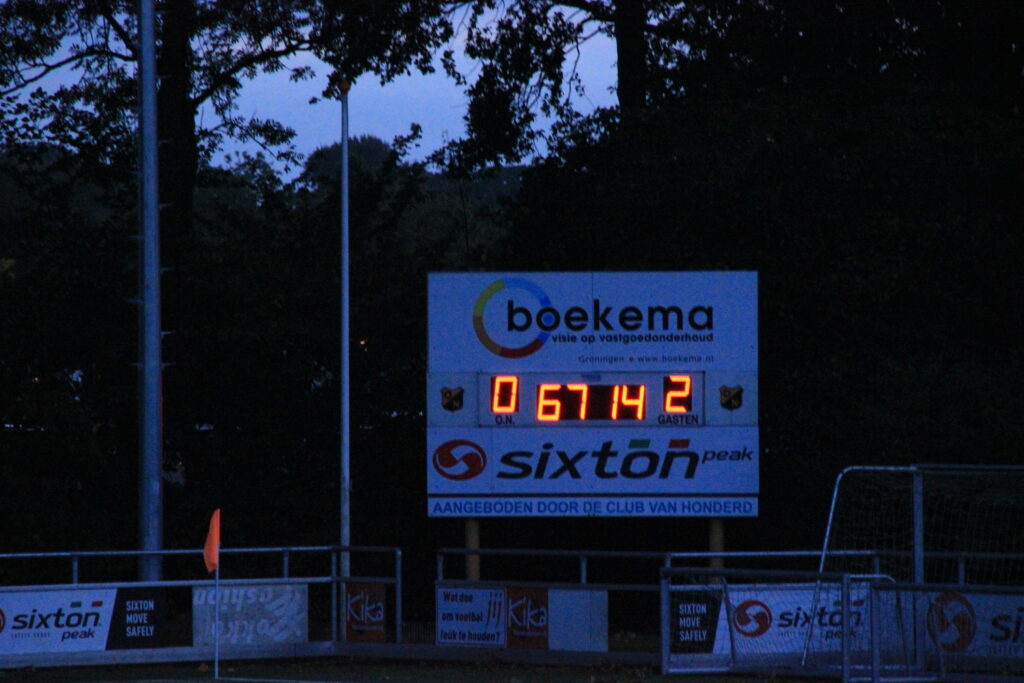 Drachtster Boys verdubbelde de voorsprong toch. Na 52 minuten verstuurde Smit de voorzet die door Joost Schoenmaker werd raak gekopt. Een klein kwartier later staakte scheidsrechter Jasper Ottens het duel, omdat het te donker werd. Wanneer het restant wordt uitgespeeld is nog onduidelijk.