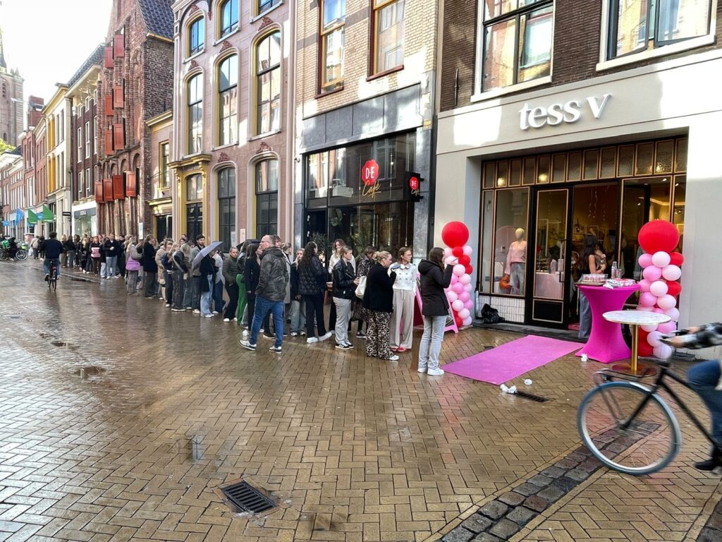 “Tijdens de opening zullen we groots uitpakken”, kopte de kledingwinkel afgelopen week op haar online-kanalen. Zo kregen de eerste vijftig klanten een gratis goodiebag en wordt er korting gegeven op de gehele collectie. “De deuren van de winkel zijn om 10.00 uur opengegaan”, vertelt een nieuwsfotograaf. “Rond het middaguur stond er een wachtrij van ongeveer honderd meter in de richting van het Akerkhof.”