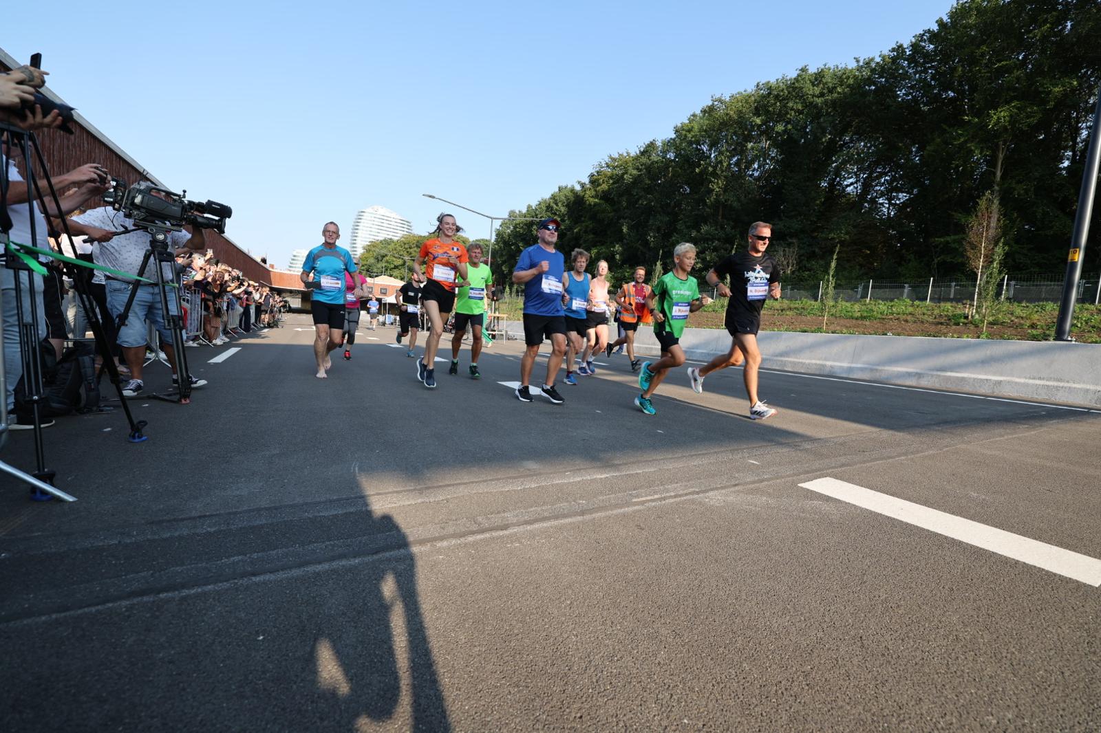 Een groep hardloper met onder hen meerkampatleet Sofie Dokter opende de nieuwe zuidelijke ringweg. Foto: Rieks Oijnhausen