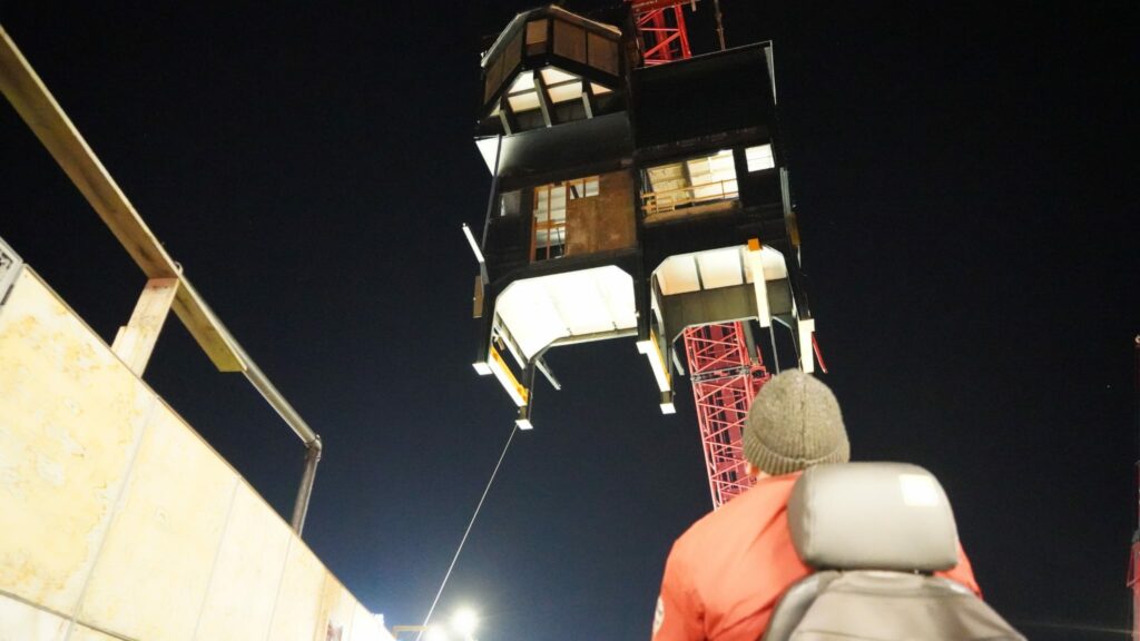 De voorbereidende werkzaamheden begonnen zaterdagavond rond 23.00 uur. In het eerste deel van de nacht zweefde het seinhuis door de lucht om rond 03.45 uur op de uiteindelijke plek te arriveren. “Het was spectaculair en heel bijzonder om te zien”, vertelt nieuwsfotograaf Patrick Wind van 112groningen.nl. Voor Strukton en ProRail was het ook een pittige klus. Om de 120 ton-wegende passerelle (loopbrug, red.) en seinhuis van 90 ton te verplaatsen werd gebruik gemaakt van een kraan van vijfhonderd ton.