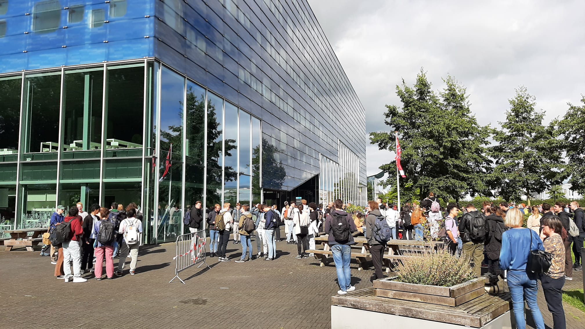 Een paar honderd studenten moesten vrijdag aan het begin van de middag op de Zernika Campus een tijd de straat op vanwege een brandmelding.