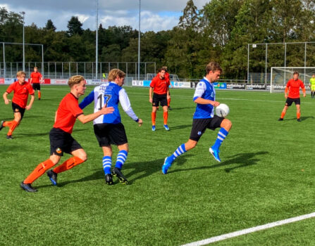 Randje buitenspel, na rijp beraad werd de treffer van Roy Bollemaat negen minuten voor rust toch toegekend, 2-1.